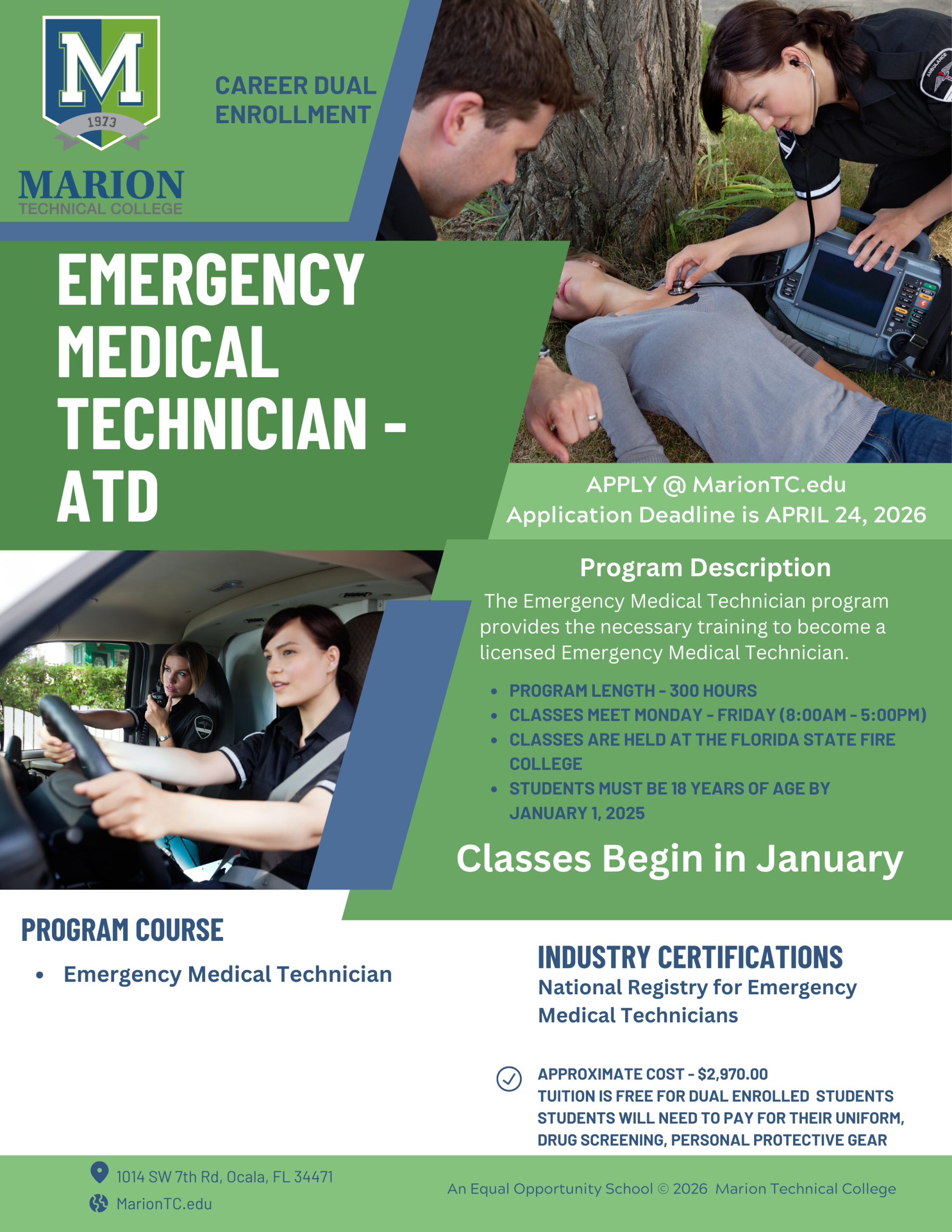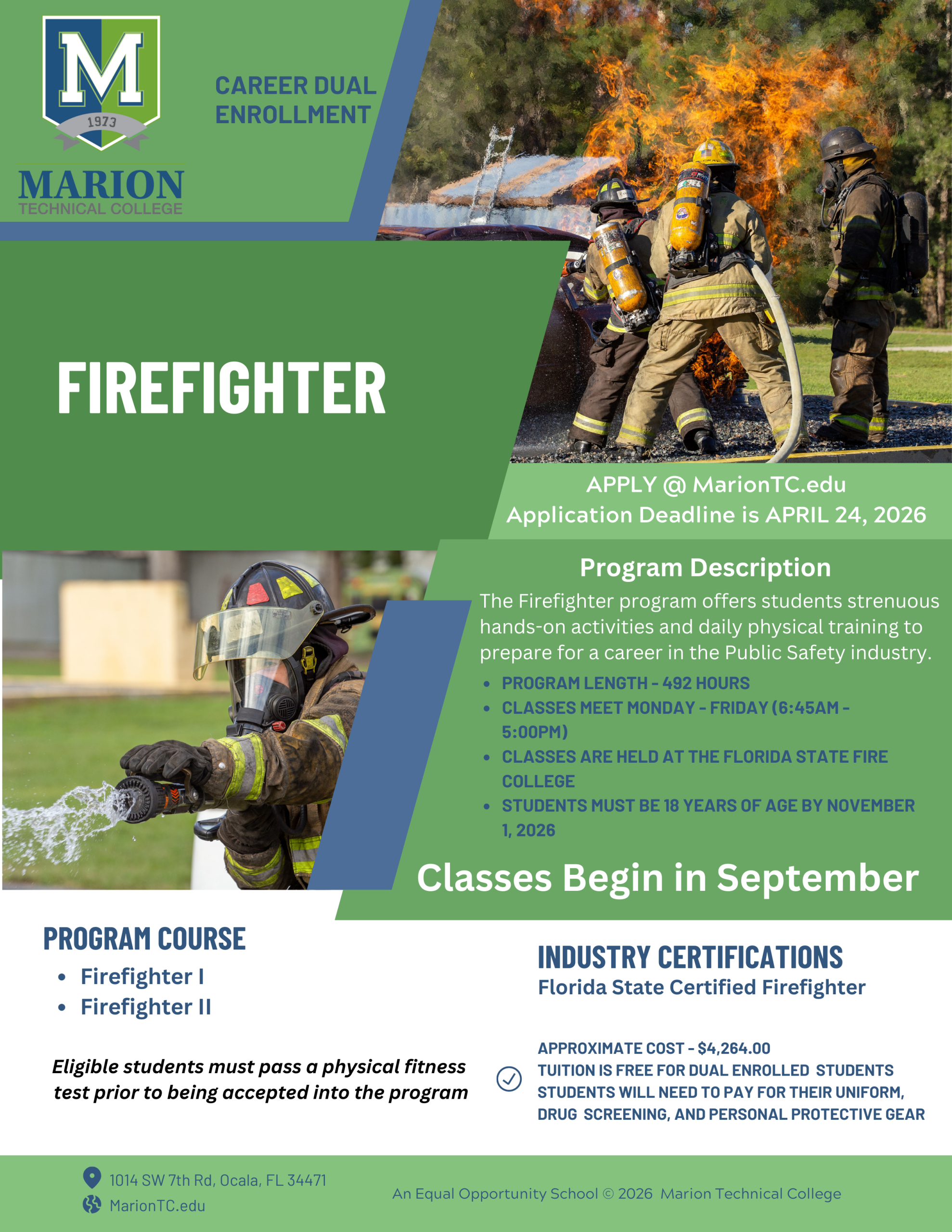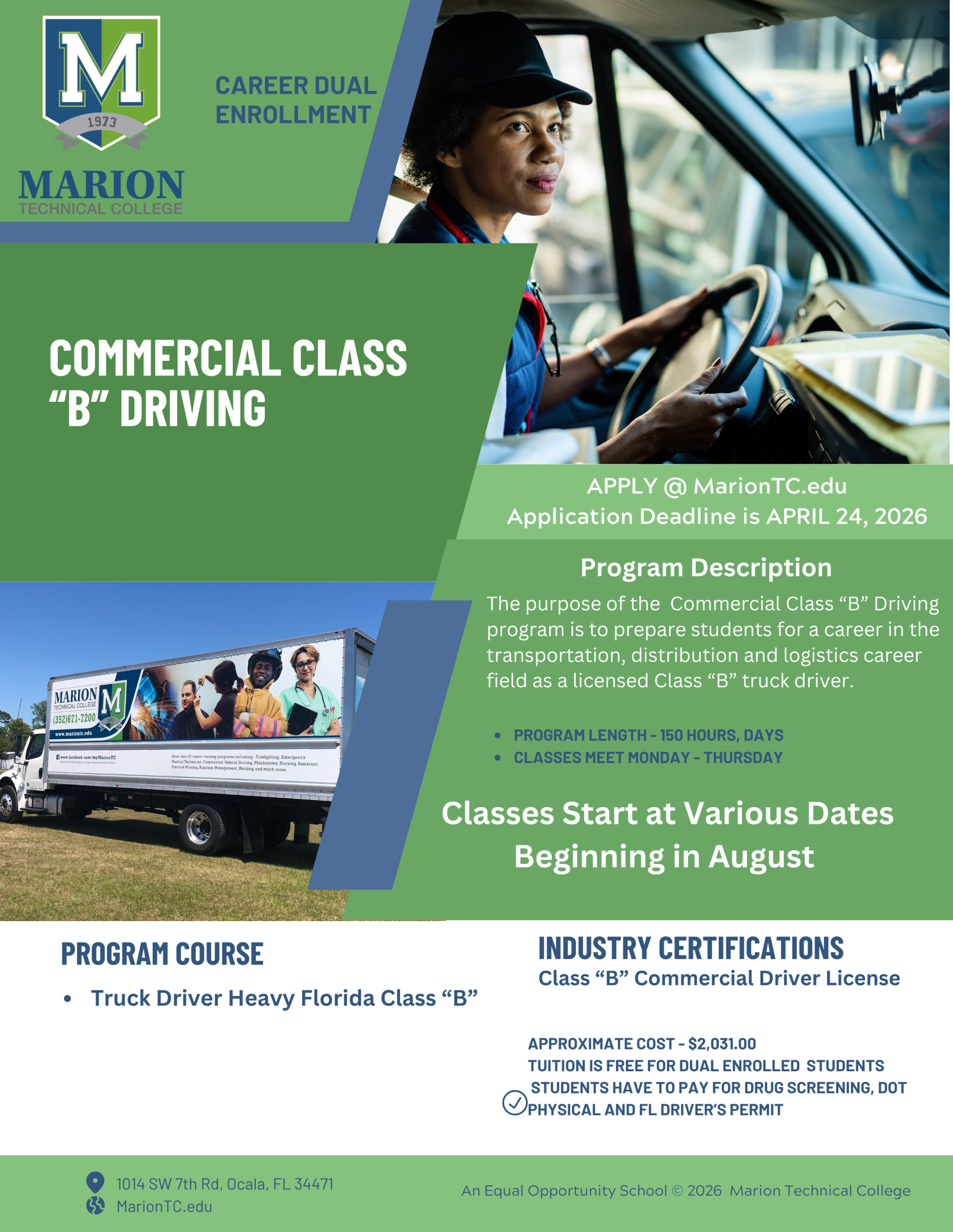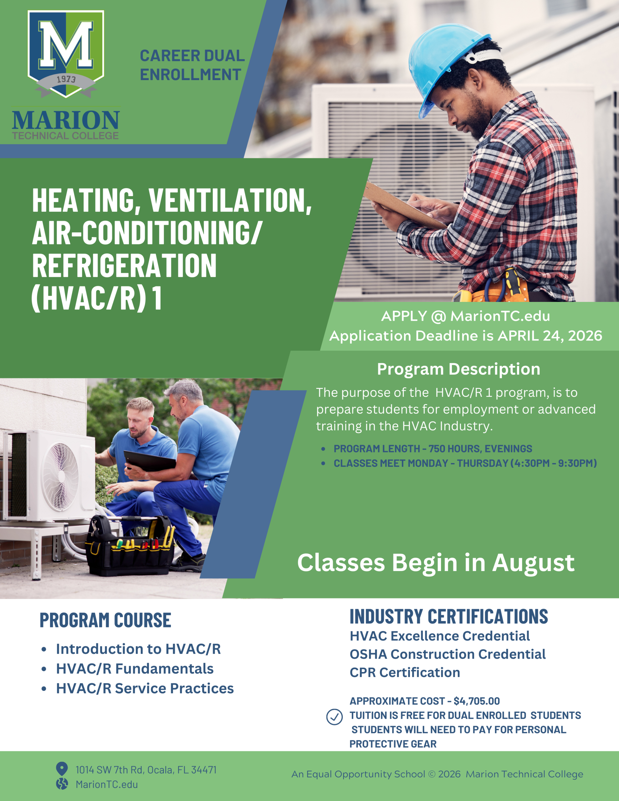 Marion Technical College offers 14 Career Dual Enrollment programs for Marion County full-time high school students, age 16 & older.